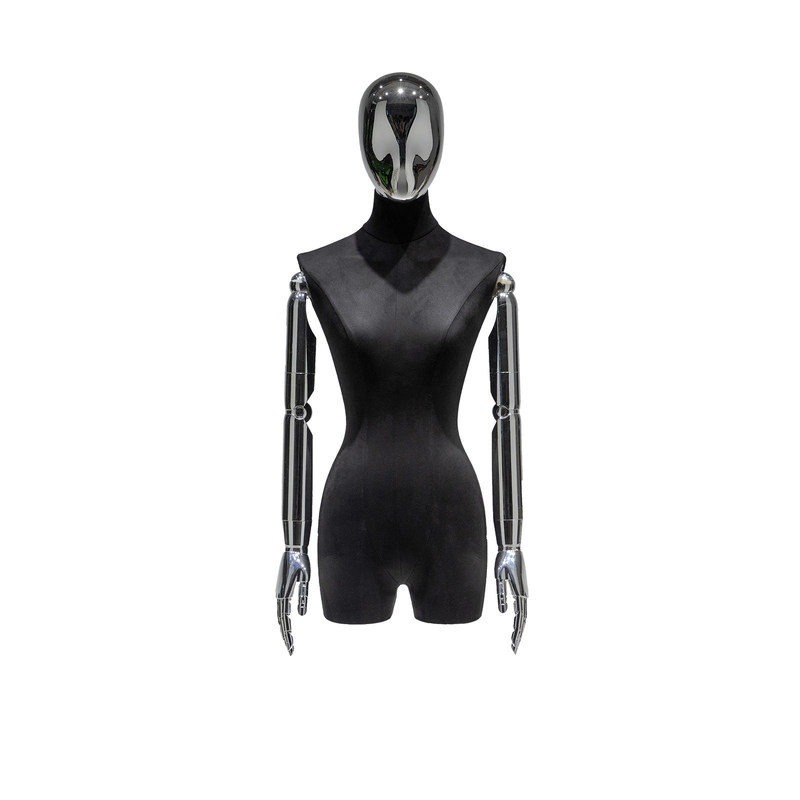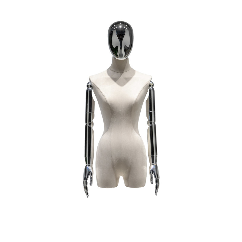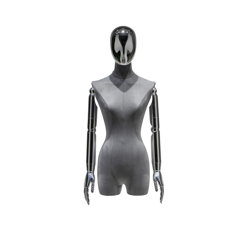 Η μοναδικότητα αυτής της γυναικείας κούκλας έγκειται στα ηλεκτροπληρωμένα χέρια και το κάλυμμα του σώματος της.Το ηλεκτροπληρωμένο ασημένιο χέρι εκπέμπει μια μοντέρνα και μοντέρνα ατμόσφαιρα, προσθέτοντας μια μοναδική γοητεία και να τονίσει το έργο μόδας σας.Η κάλυψη του μισού σώματος παρέχει μια αίσθηση μυστηρίου και μοναδικό στιλ για την επίδειξη ρούχων, προσελκύοντας την προσοχή του κοινού.Είτε είστε σχεδιαστής μόδας είτε πωλητής μόδας, αυτό το γυναικείο μανεκέλ είναι η ιδανική επιλογή για την βιτρίνα σας.Τα ασημένια μπράτσα και η μισή κάλυψη του σώματος θα δώσουν στο εμπορικό σας σήμα μια σύγχρονη και υψηλού επιπέδου αίσθηση, προσελκύοντας την προσοχή περισσότερων πελατών.