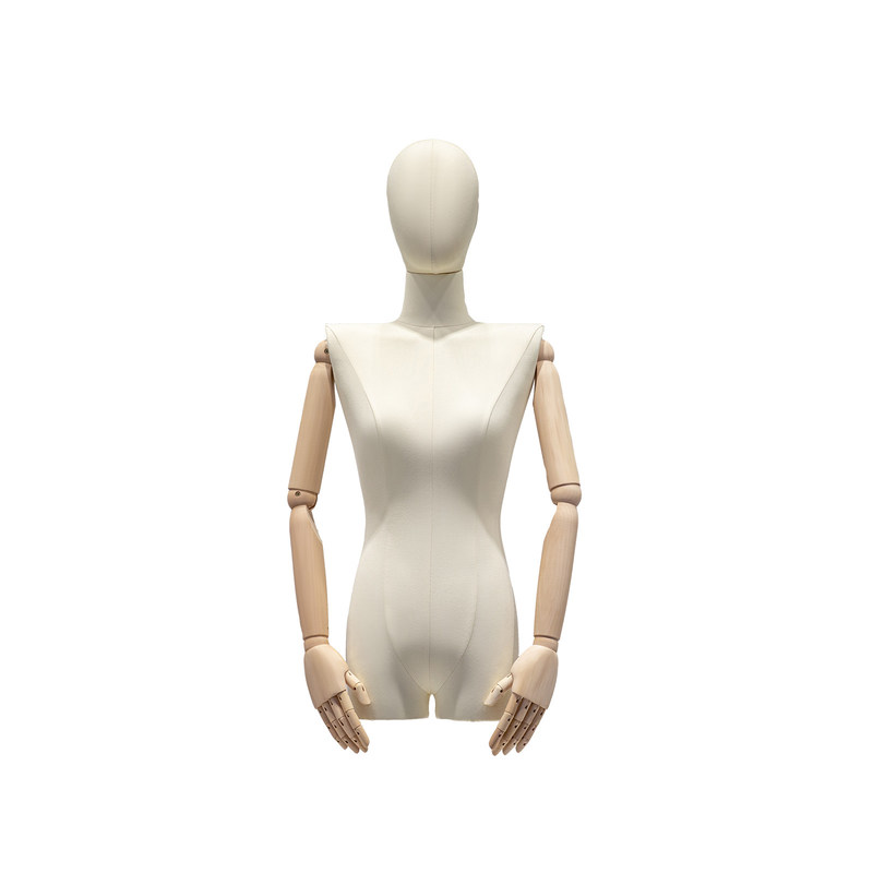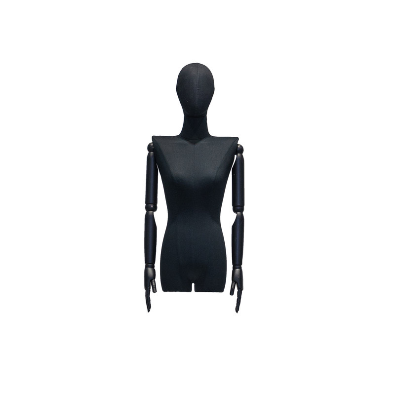 Το λευκό και το μαύρο είναι διαχρονικά κλασικά χρώματα που πάντα θεωρούνταν πολύτιμα στον τομέα της μόδας.Το λευκό παρουσιάζει μια καθαρή, φρέσκια και κομψή ατμόσφαιρα, κατάλληλη για την προβολή καθαρών και φωτεινών σχεδίων και προϊόντων.Το μαύρο παρουσιάζει μια μυστηριώδη, κομψή και ελκυστική γοητεία, κατάλληλη για την επίδειξη υψηλού επιπέδου και μοντέρνων στυλ και προϊόντων.Ανεξάρτητα από το χρώμα που θα επιλέξετε, αυτό το μοντέλο με το μισό σώμα μπορεί να φέρει μια κλασική αίσθηση μόδας στην επίδειξη μόδας σας.Αυτό το γυναικείο μοντέλο μισού σώματος είναι η ιδανική επιλογή για τα εμπορικά σήματα μόδας, τους σχεδιαστές και τους λιανοπωλητές.Μπορεί να δείξει τη δημιουργικότητα της μόδας και τα προϊόντα σας.Επιλέγοντας διαφορετικά χρώματα και συνδυασμούς, μπορείτε να παρουσιάσετε ένα ευρύ φάσμα από στυλ μόδας και έμπνευση.Κάντε αυτό το κλασικό μοντέλο με το μισό σώμα περιτυλιγμένο σε λευκό και μαύρο λινό ένα από τα κορυφαία σημεία της επίδειξής σας, φέρνοντας μια κομψή και μοντέρνα γιορτή μόδας στο κοινό.Θα κερδίσει περισσότερο έπαινο και προσοχή για το εμπορικό σήμα σας και θα προσφέρει στους πελάτες μια μοναδική και ευχάριστη εμπειρία αγορών.Είτε παρουσιάζεται ανεξάρτητα είτε σε συνδυασμό με άλλα μοντέλα, αυτό το μοντέλο μισού σώματος θα είναι η τέλεια επιλογή για την επίδειξη μόδας σας.