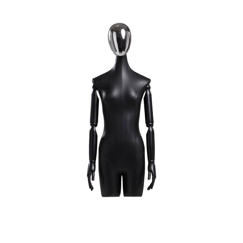 Είμαστε υπερήφανοι που παρουσιάζουμε ένα μοναδικό και εντυπωσιακό μοντέλο με κινητό κεφάλι.Το μοντέλο που χρησιμοποιείται για την επίδειξη του παραθύρου έχει επιφάνεια ηλεκτροπληρωμένη, παρέχοντας εξαιρετικά οπτικά αποτελέσματα και αίσθηση επαγγελματισμού για την επίδειξη του προϊόντος σας.Ένα από τα κύρια χαρακτηριστικά αυτού του μοντέλου με το μισό σώμα είναι το κινητό σχέδιο της κεφαλής του.Αυτό σας επιτρέπει να ρυθμίσετε τη γωνία και τον προσανατολισμό του κεφαλιού του μοντέλου, όπως απαιτείται, για να προβάλλετε καλύτερα διαφορετικά προϊόντα.Είτε παρουσιάζετε μόδα ρούχα, κοσμήματα, γυαλιά, ή άλλα αξεσουάρ, αυτό το κινητό σχέδιο κεφαλιού μπορεί να προσθέσει περισσότερη γοητεία και ελκυστικότητα στο προϊόν σας.